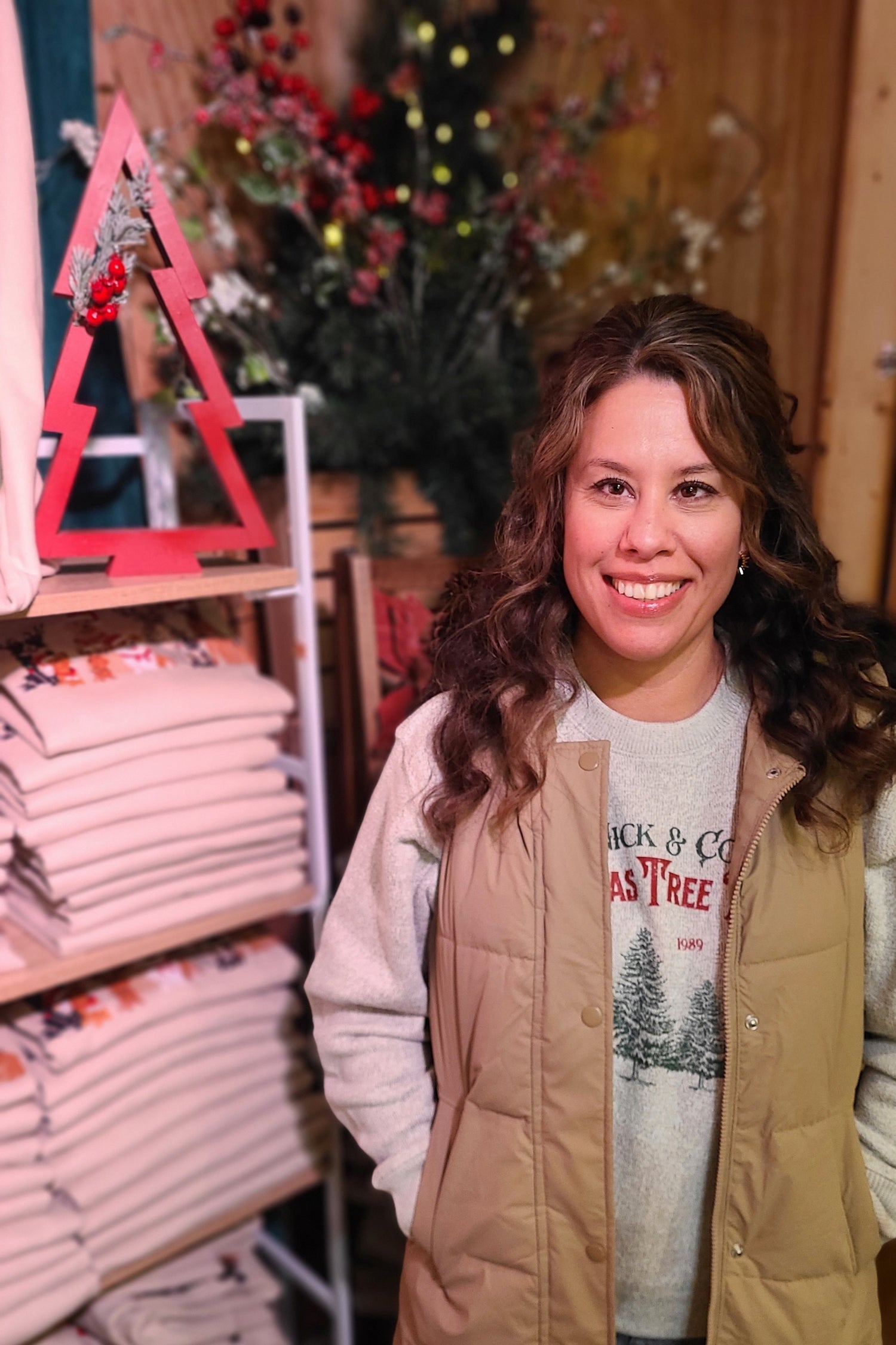 In addition to crafting earrings, Rachel also makes Direct-to-Film (DTF) sweatshirts. DTF is similar to screenprinting but does not crack or fade over time.